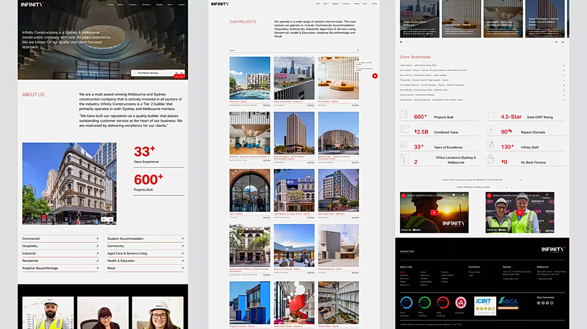 Avustralya merkezli inşaat firması Infinity Constructions için markanın profesyonelliğini ve güven veren kimliğini dijital ortama taşıyan modern bir web sitesi tasarladık.