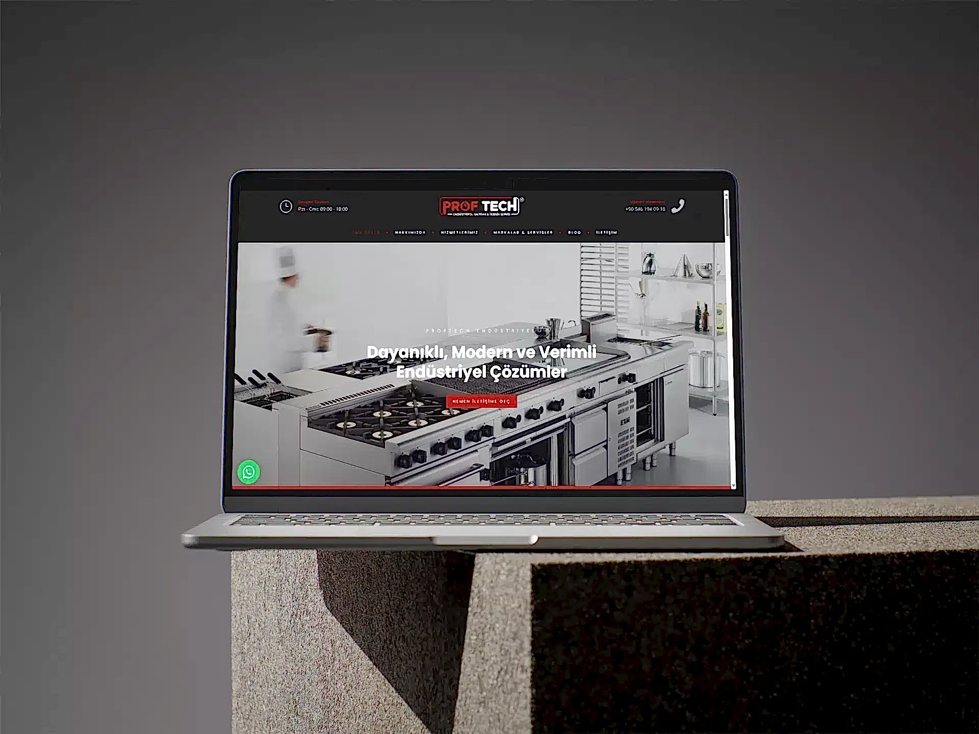 Proftech Endüstriyel için modern, güçlü ve kullanıcı dostu bir web sitesi tasarladık. Endüstriyel mutfak, çamaşırhane, soğuk oda ve ekipman çözümlerini öne çıkaran bu tasarım, markanın profesyonel ve teknik kimliğini dijital ortamda etkileyici bir biçimde yansıttı. Tasarım dili, kurumsal güveni ve yüksek kalite standartlarını vurgulayacak şekilde markaya özel geliştirildi.